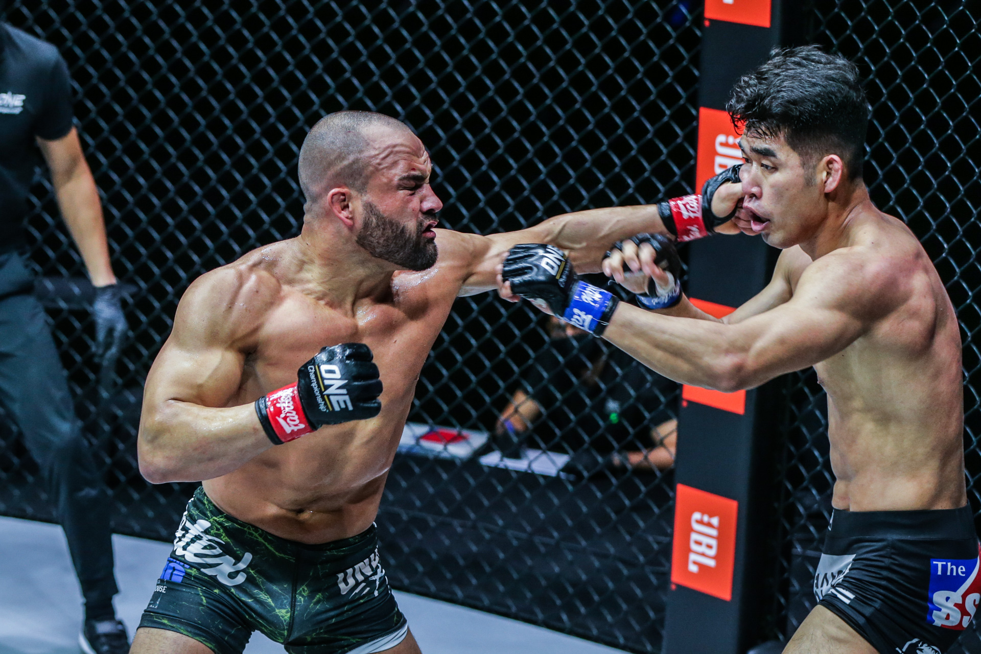 Following up from full mount, Alvarez transitioned skillfully to Imada`s back during a scramble and secured a rear-naked choke, targeting the neck of the renowned submission specialist.