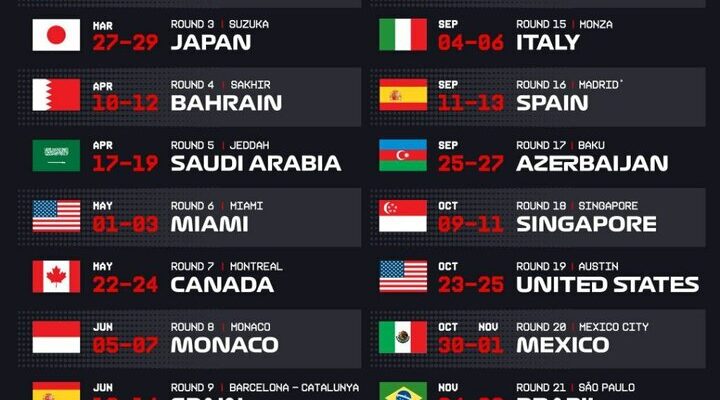 - Madrid (Spain): Replacing Barcelona, Madrid’s new Madring street circuit will host the Spanish Grand Prix from 2026 until 2035. This long-term commitment solidifies the shift toward city-based events in established markets.