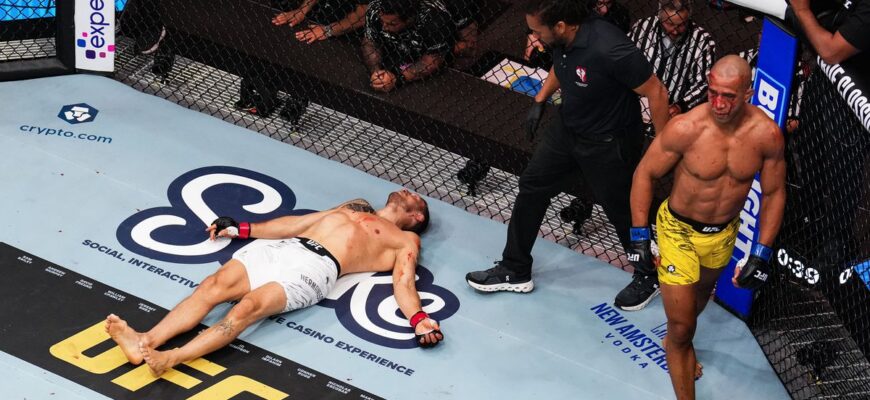 The knockout was followed by controversy, as UFC commentator Daniel Cormier criticized the referee`s delayed stoppage after Hermansson was hit with an unnecessary follow-up hammerfist while seemingly unconscious, leaving him motionless for several minutes during the preliminary feature bout.